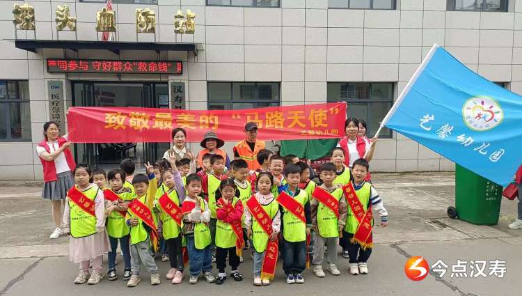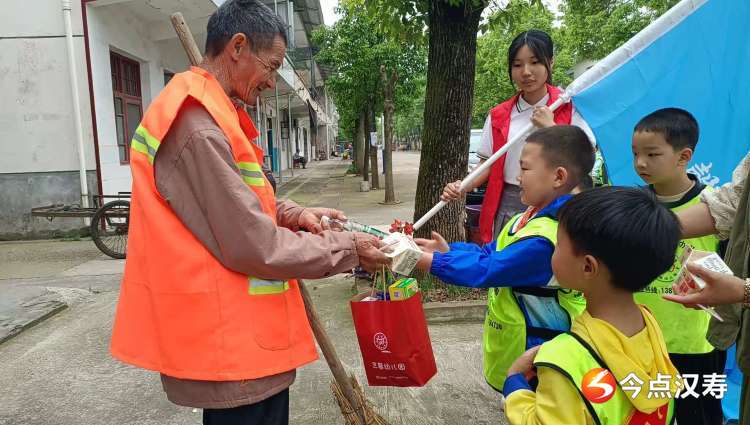 4月29日,汉寿县坡头镇组织艺馨幼儿园师生走向街头,慰问一线的环卫工人,同时参加清理街面垃圾。