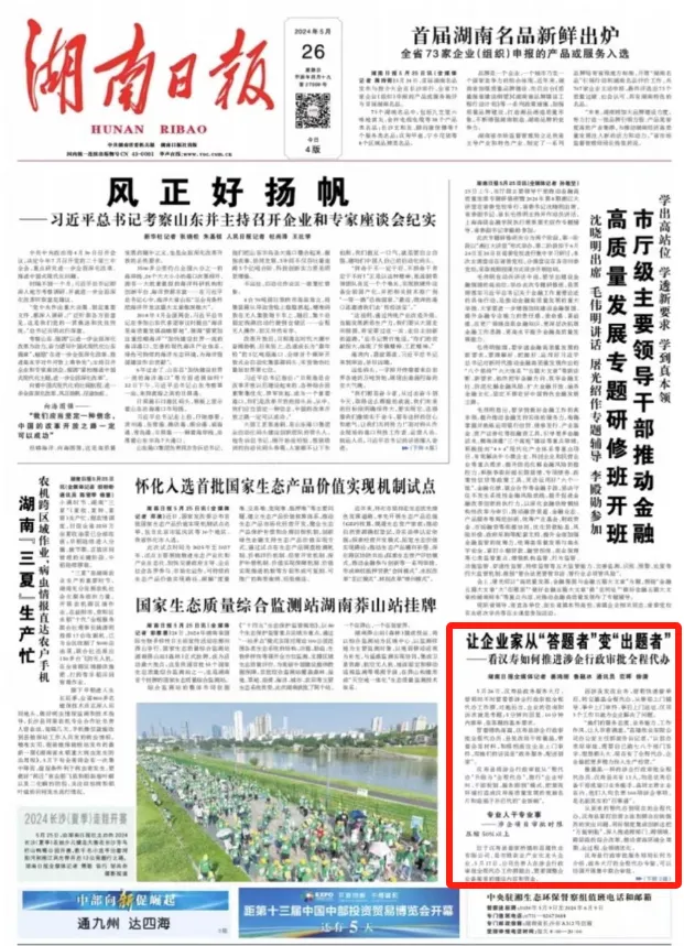 《湖南日报》“头版”点赞汉寿:企业尊享实实在在的"办事无忧",企业家身份华丽蝶变