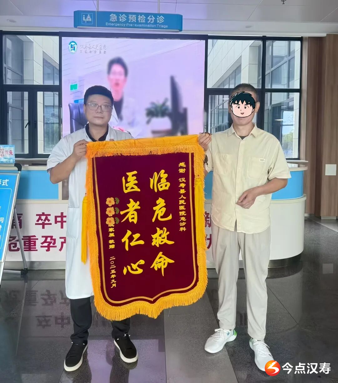 康复后的刘先生在家人的陪同下,专程返回县人民医院急诊科,将一面写满感激的锦旗送到了医护人员手中。