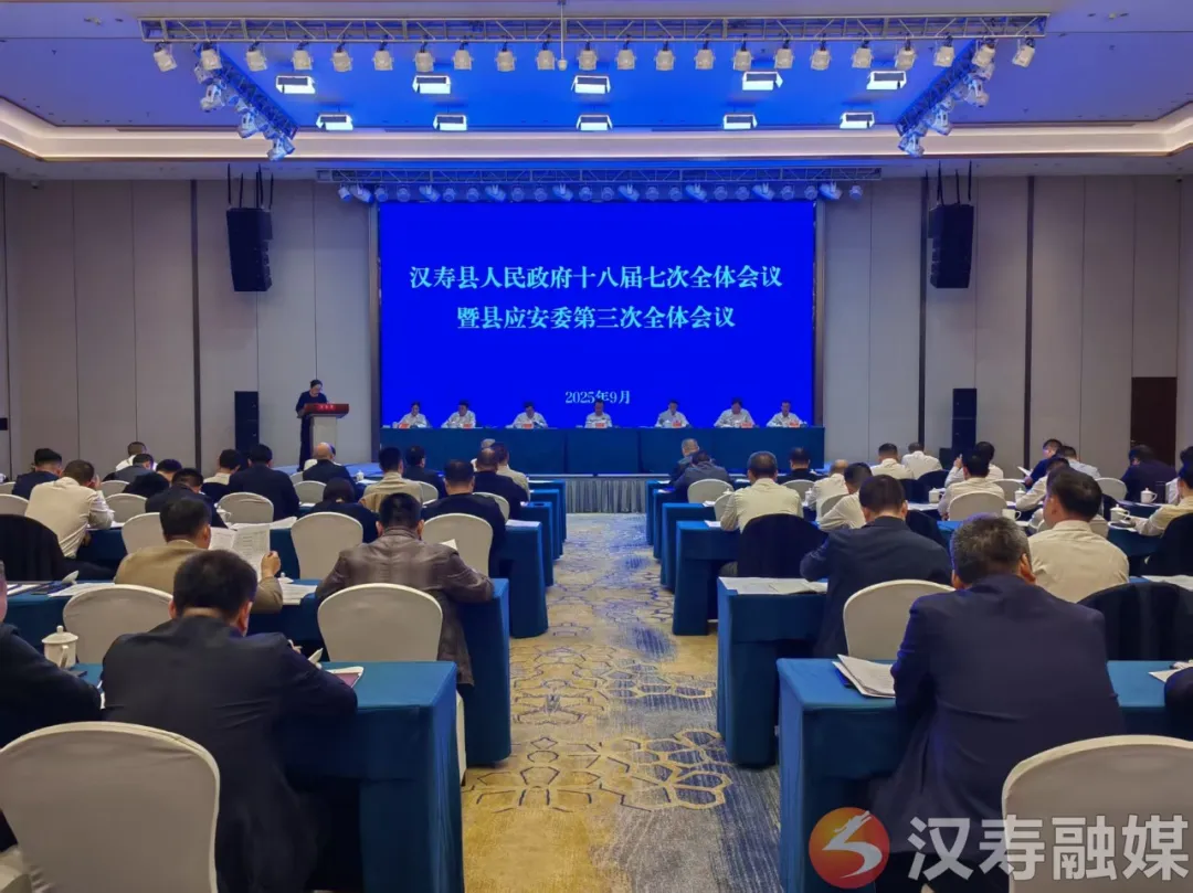 汉寿融媒9月26日讯(记者:李琪宇)9月25日,汉寿县人民政府十八届七次全体会议暨2025年县应安委会第三次全体会议召开。会议主要任务是深入贯彻习近平总书记关于湖南工作的重要讲话和指示批示精神,认真落实省委省政府、市委市政府工作要求,总结今年以来政府工作,分析当前形势,部署下一阶段重点任务及国庆、中秋“双节”期间安全防范工作,动员全县政府系统锚定目标、奋力冲刺,确保“十四五”规划圆满收官。县委副书记、县人民政府县长王时雨主持会议并讲话。