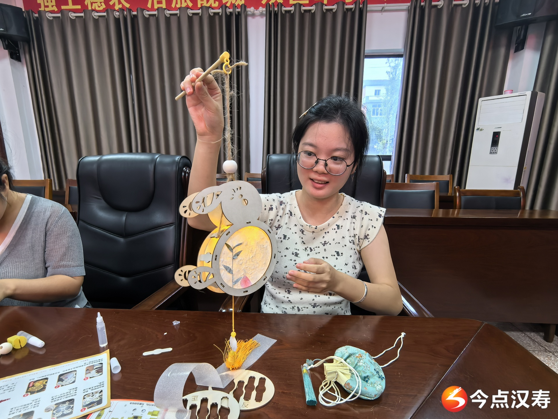 活动现场,工作人员提前准备了竹片、宣纸、桂花、香囊等材料,并向大家讲解制作方法。干部们有的用竹条扎制灯架,有的将中药材填入香囊,系上流苏。