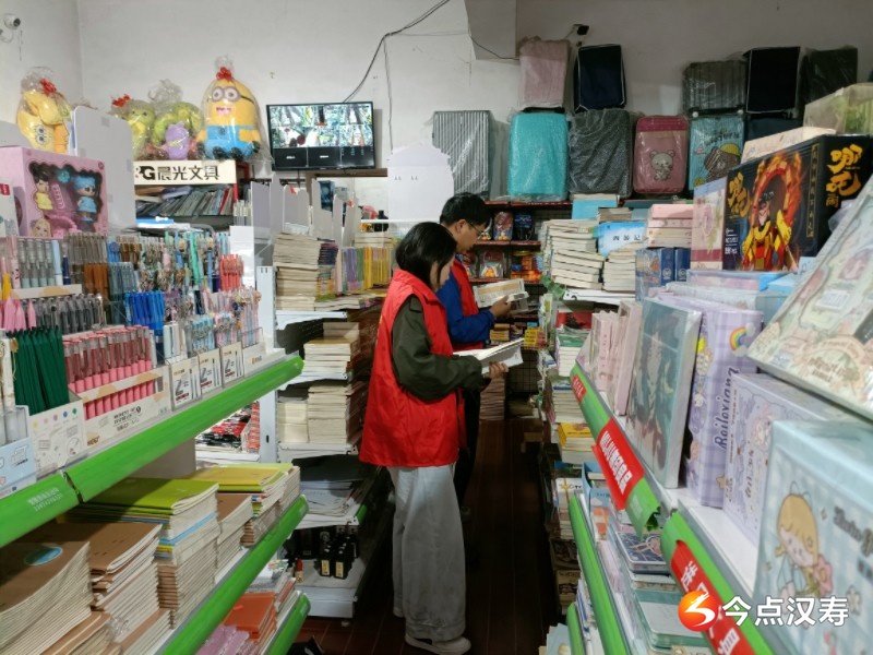 随后,工作人员转向文体店,对店内陈列的出版物、文具玩具逐一细致检查,核查是否有非法出版物及含色情、暴力等不良内容的商品,特别关注了商品来源、正版标识和内容合规性。