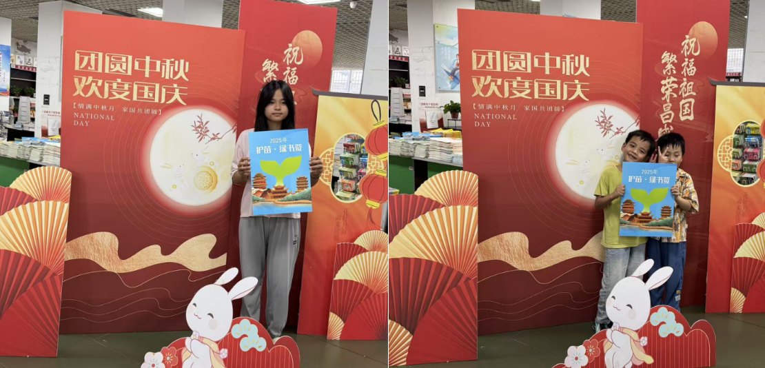 “护苗·绿书签”打卡互动环节,得到了读者朋友,特别是年轻群体的积极响应。他们纷纷在主题展台前手持“护苗行动”绿书签打卡,并通过抖音、微信朋友圈等平台发布“这个国庆,我和新华书店共同庆祝!”这一举措不仅记录了读者们参与活动的精彩瞬间,更通过社交网络的传播,将爱国与阅读的主题传递给更多人。