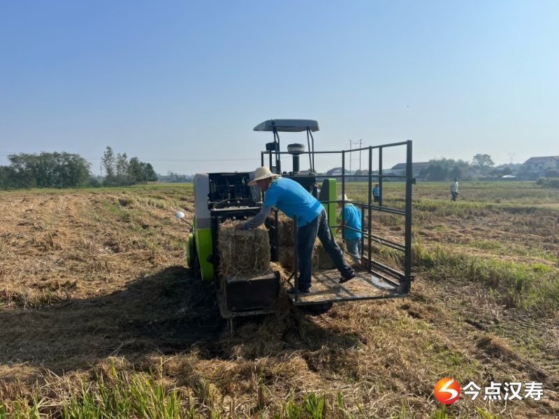 现场,技术员操作秸秆打捆机,沿着收割后的田埂缓缓前行。机器前端的捡拾器将散落的秸秆“吞”进机身,经过压缩、打结,短短几分钟就产出一捆紧实的秸秆,这些秸秆将被回收利用,实现“变废为宝”。“秸秆打捆回收,一来杜绝了焚烧污染,二来还能再利用,比直接烧了强多了!”农业综合服务中心主任一边指着打捆机的作业流程,一边向参会人员进行解说。