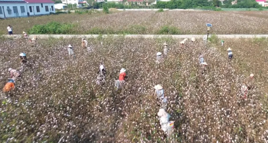 在洲口镇华光村省级棉花种植示范基地,放眼望去,成熟的棉桃纷纷绽裂,洁白的棉絮挂满枝头。村民们穿梭在田间,熟练地采摘新棉,一派喜人的丰收景象。