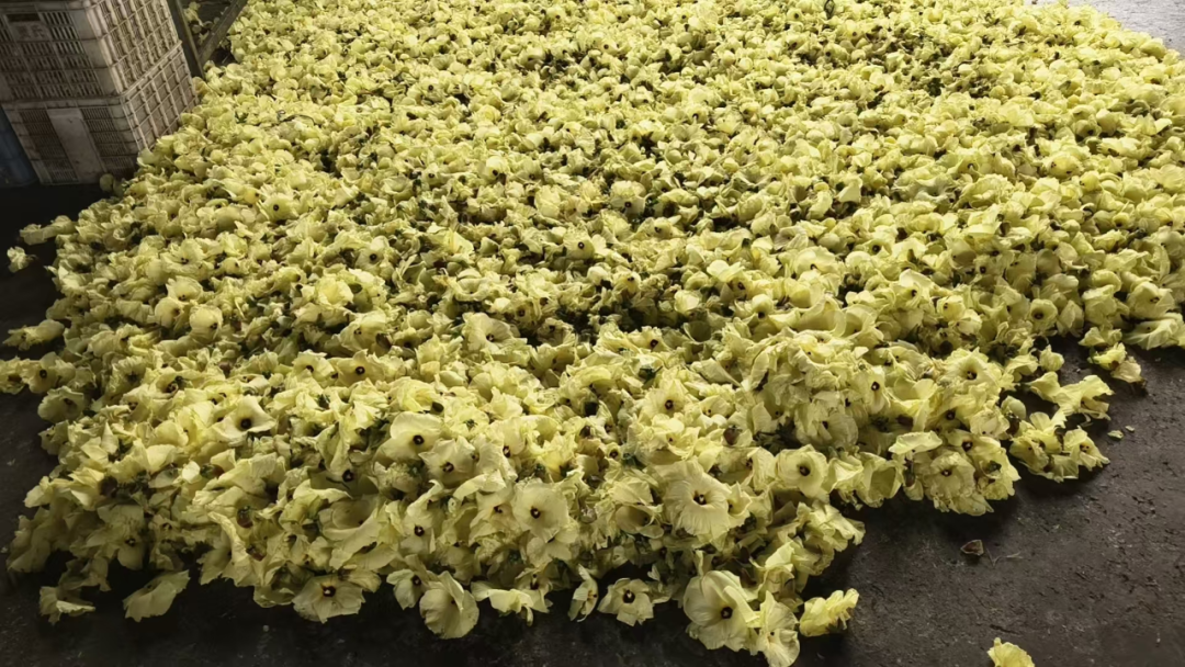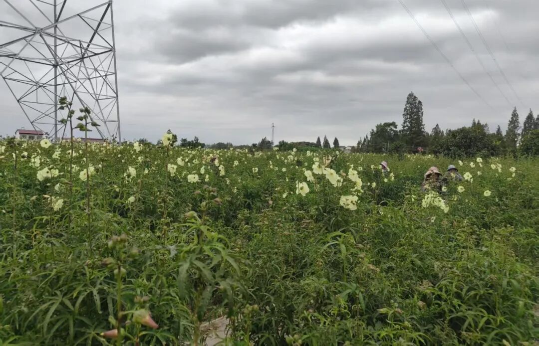 目前,罐头嘴镇黄蜀葵种植总面积达1072亩,通过土地流转、劳务用工等方式,带动村民实现“家门口就业”。为解决鲜花易腐问题,多家合作社联合建成烘干生产线,实现“就近采摘、就地加工”,将鲜花制成干花原料,大幅提升产品附加值。