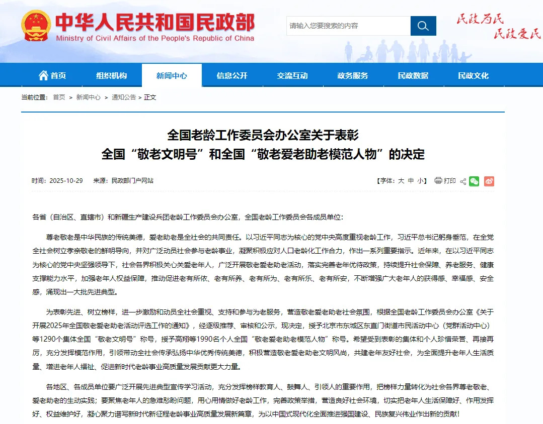日前,全国老龄办发布《关于表彰全国“敬老文明号”和全国“敬老爱老助老模范人物”的决定》,常德市共有4个集体、7人榜上有名。