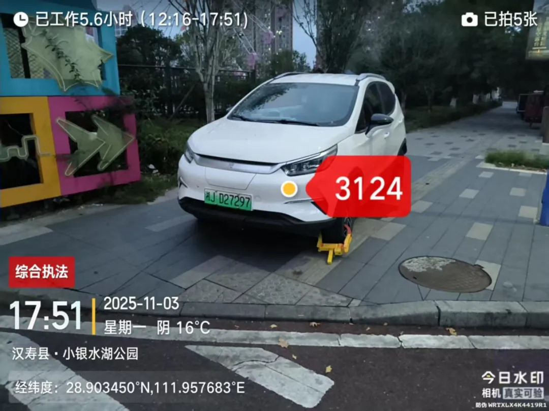 湘JD27297于2025年11月3日在小银水湖公园不按规定停车