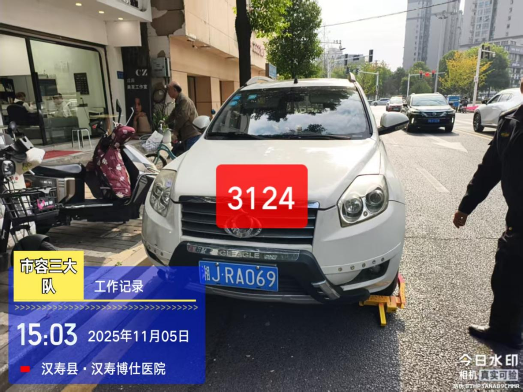 湘JRA069于2025年11月5日在博仕医院不按规定停车。