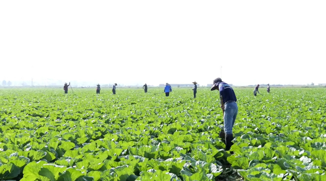在露天花菜种植区,工人们熟练地用刀具收割成熟的花菜。采收现场设置了临时称重点,工人们将收割好的花菜进行称重记录后,立即装上运输车,发往省内市场。在大白菜种植区,十几名工人在弯腰除草,确保白菜生长环境优良。