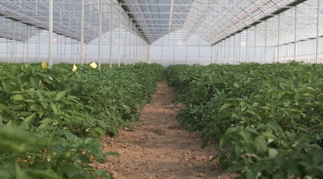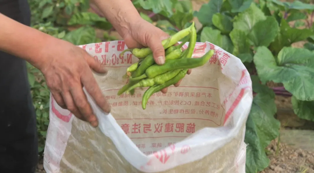 连片的蔬菜大棚内,鲜亮饱满的辣椒挂满枝头,采收工人手法娴熟地挑选采摘装袋。每个大棚每天能采收近500斤辣椒,当天就完成分级包装,确保新鲜度。