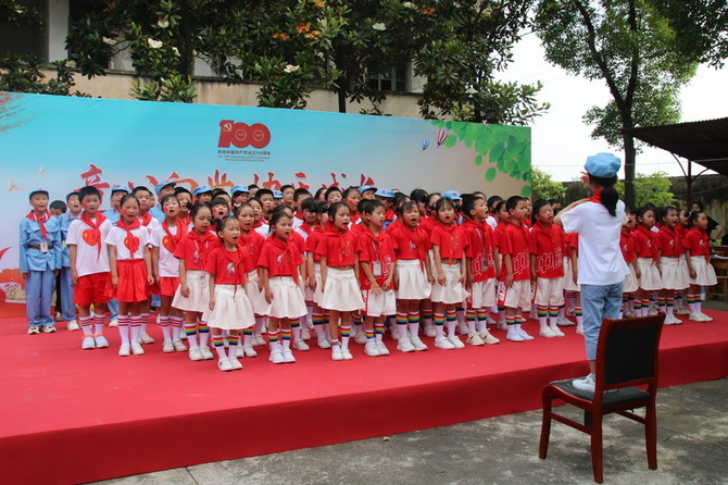 “我们是共产主义接班人,继承革命先辈的光荣传统,爱祖国爱人民……”展演活动在全校学生的《中国少年先锋队队歌》的合唱中拉开序幕。