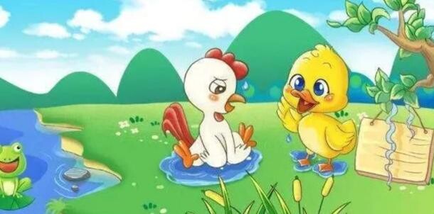 “小鸡,你嘴里叼的啥呀?” 一只小黄鸭仰着脖子问道。