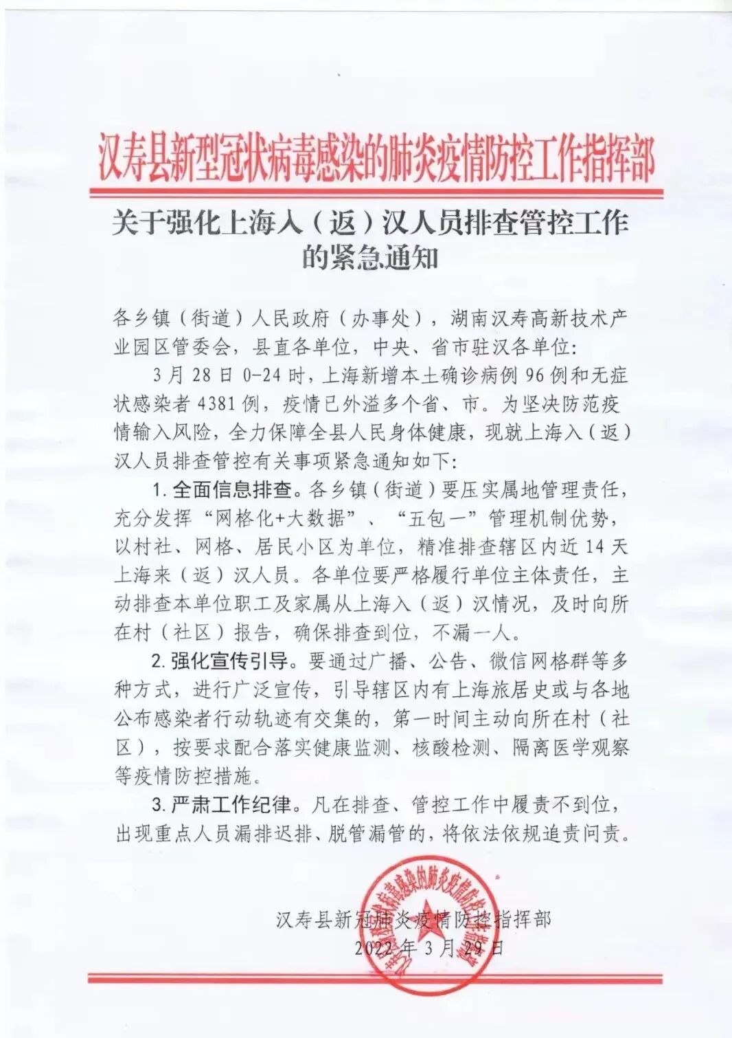 关于强化上海入(返)汉人员排查管控工作的紧急通知
