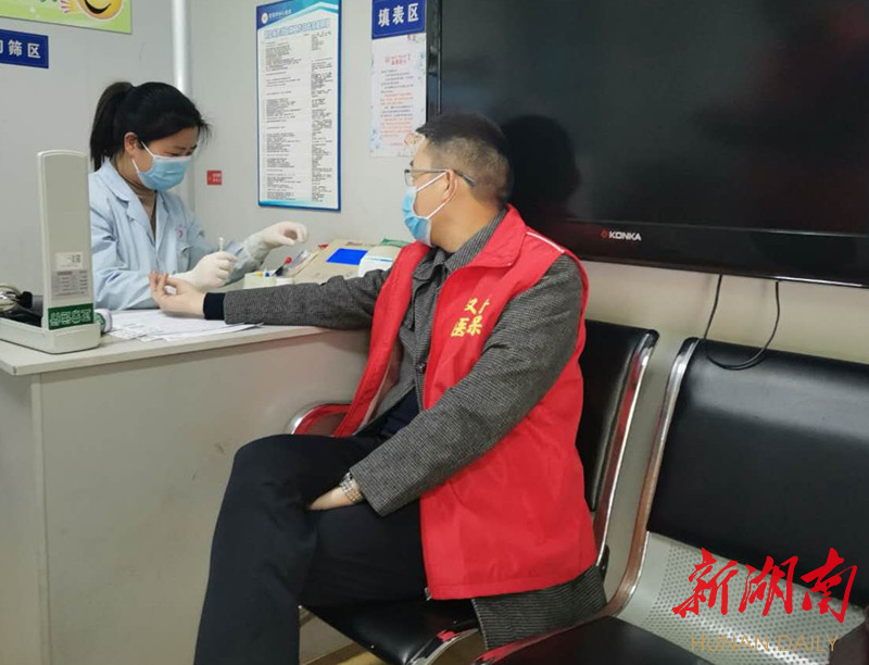 4月2日,汉寿县医疗保障局志愿者到县献血屋开展无偿献血公益活动。
