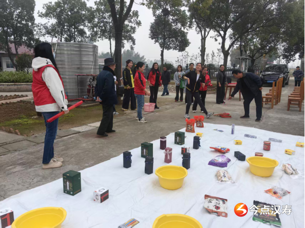 志愿者们与爱心商家代表早早便带着精心准备的物资来到敬老院。刚一进门,大家便热情地与老人们打招呼,关切地询问他们的身体状况和生活需求。活动在趣味套圈游戏中拉开序幕,志愿者们精心准备的日用品和擂茶等特色奖品,让老人们乐在其中。随后,幼儿园小朋友们表演了歌舞、朗诵等节目,并送上长寿面和柿子,用童真童趣传递祝福。另一组志愿者则在厨房忙碌,为老人们烹制了炖猪蹄、萝卜排骨汤等营养午餐。