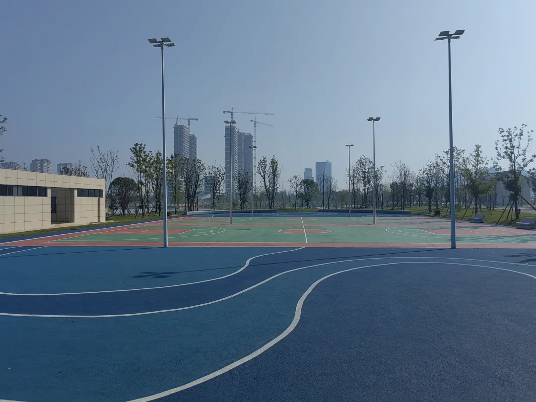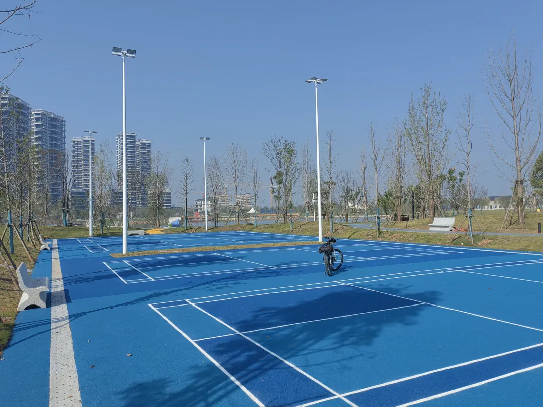 以滨水为中心,周边的功能区分工明确,休闲区热闹、亲水区童趣、运动区活力。因紧挨汉寿一中,这些运动场地不仅为市民提供了锻炼身体的场地,也为学子们闲时或休假提供了运动场所,全方位满足不同层次的需求。