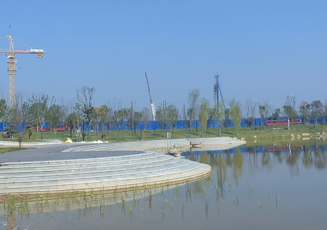 120亩滨水湖芯景,如一盘碧绿的翡翠,镶嵌在公园场地中心。滨水景观轴南北呼应,呈现壮阔的水面风光。