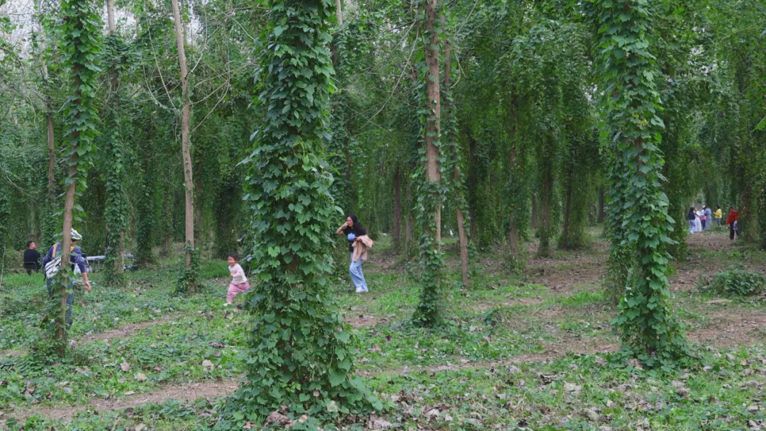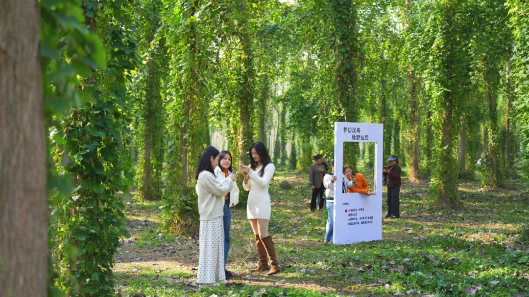 这处被网友们亲切地称为现实版“绿野仙踪”的网红打卡点,位于汉寿县沧港镇风菱村。每年秋冬时节,野生的栝楼、乌蔹莓等藤蔓植物或在地面蔓延生长,或沿着笔直的杨树向上攀爬,层层叠叠、绿意盎然。自然造就的绿色梦境面积超百亩,最初被摄影爱好者发现,他们将摄影作品上传至社交平台后获得广泛关注,吸引了汉寿当地及周边县市的游客前来探幽赏景,感受满眼青绿、如梦如幻的人间仙境,初步形成了文旅热度。
