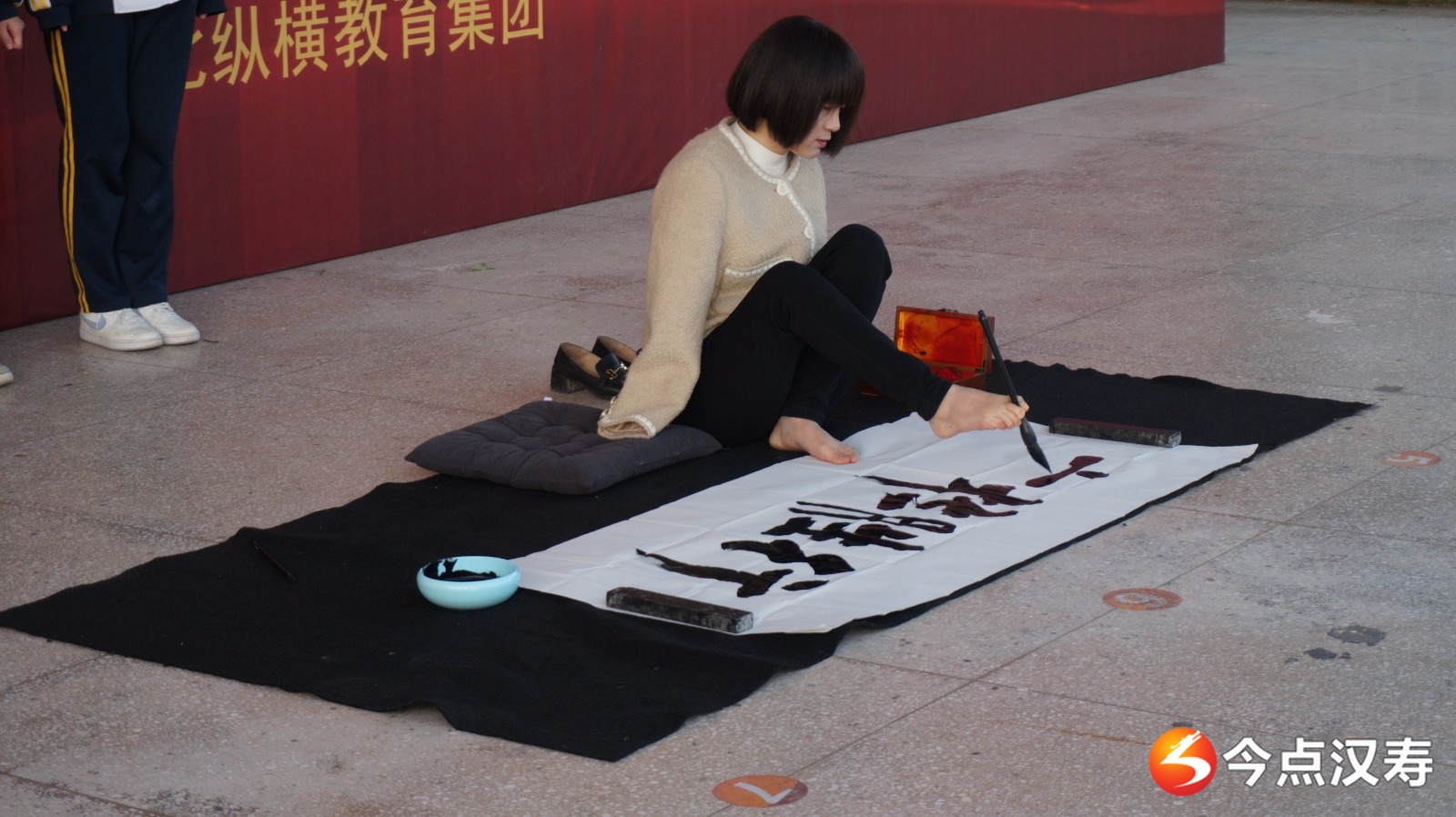 在与学生的互动环节中,李智华发起“1分钟击掌挑战”,让学子们体会到坚持的意义;她当场以脚执笔,挥毫写下《行胜于言》,更让大家见证了信念的力量。