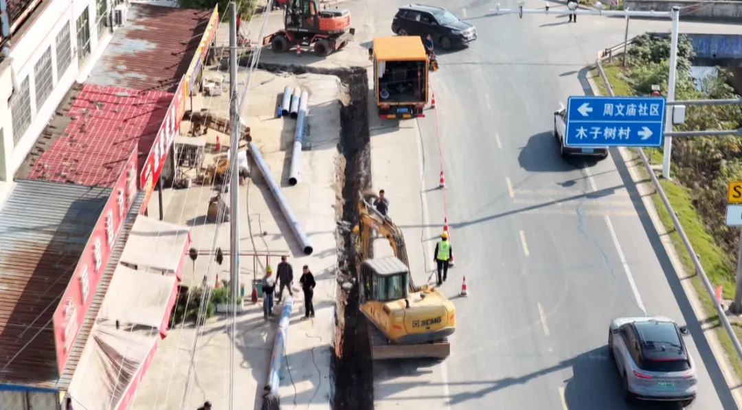 汉寿融媒11月26日讯(记者:李乐中 易文涛)11月24日,在岩汪湖镇汉岩路施工现场,汉寿县城市供水管网改造项目(一期)供水主管道正在紧锣密鼓建设中,一条承载民生期盼的“幸福管网”在徐徐铺就。