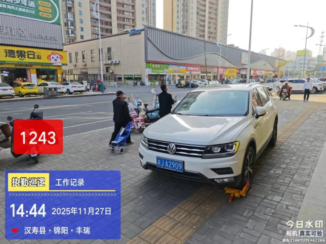 湘JA2909于2025年11月27日在锦阳丰瑞不按规定停车。