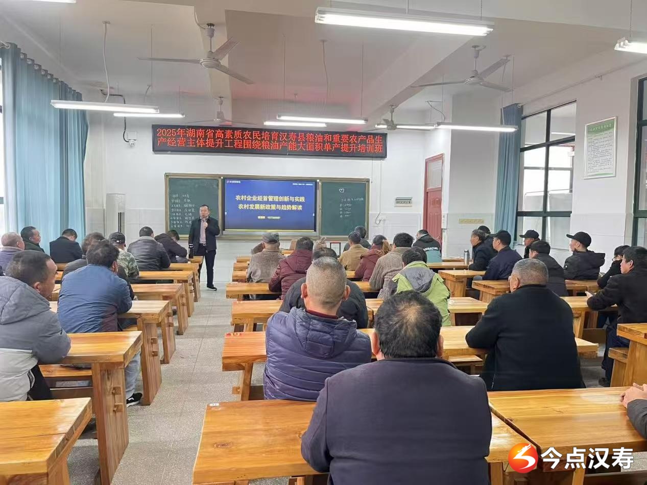 汉寿融媒12月5日讯(通讯员:覃琴)12月3日,汉寿县粮油和重要农产品生产经营主体提升工程粮油产能大面积单产提升培训班在汉寿县职业中等专业学校正式开班。