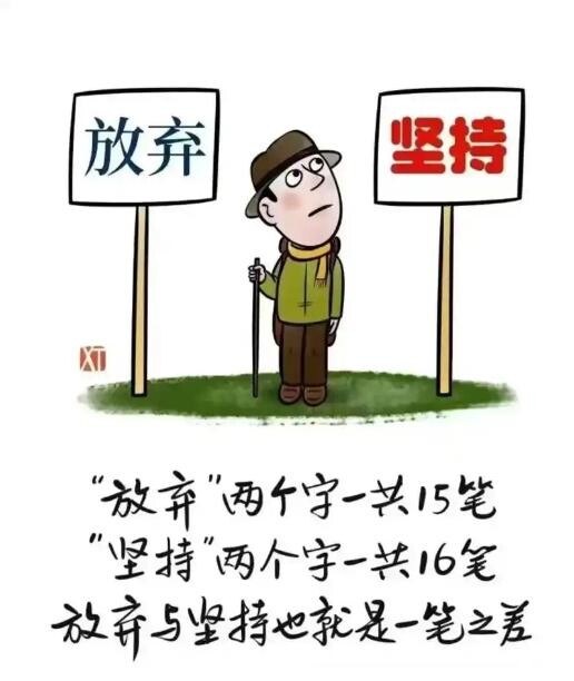 有人曾说,凡是能让人变好的事儿,做起来都不会太轻松。很多事都不如我们想象的那样难。让人感觉难得从来都不是努力而是坚持。可我们总是太轻易放弃自己,总是不断跟世界妥协。其实,也许再坚持一点点,我们就可以拿到胜利的钻石。但许多人就是在差一点点的时候选择了放弃。当你放弃时,只有一小段日子很轻松,后面的一辈子可能都会越过越难。而当你坚持住,努力的当下可能会有点苦,但未来的每一天都会越过越轻松!