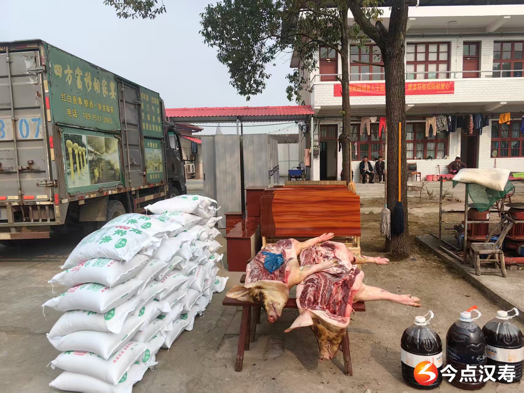 在捐赠现场,三位爱心人士带来的物资整齐摆放,包括10 套包含床头柜的床铺、10 套衣柜、50 袋大米、2 头生猪、45 升食用油。看着崭新的家具和充足的粮油肉品,敬老院的老人们脸上都露出了欣慰的笑容,纷纷向三位爱心人士表达感谢。