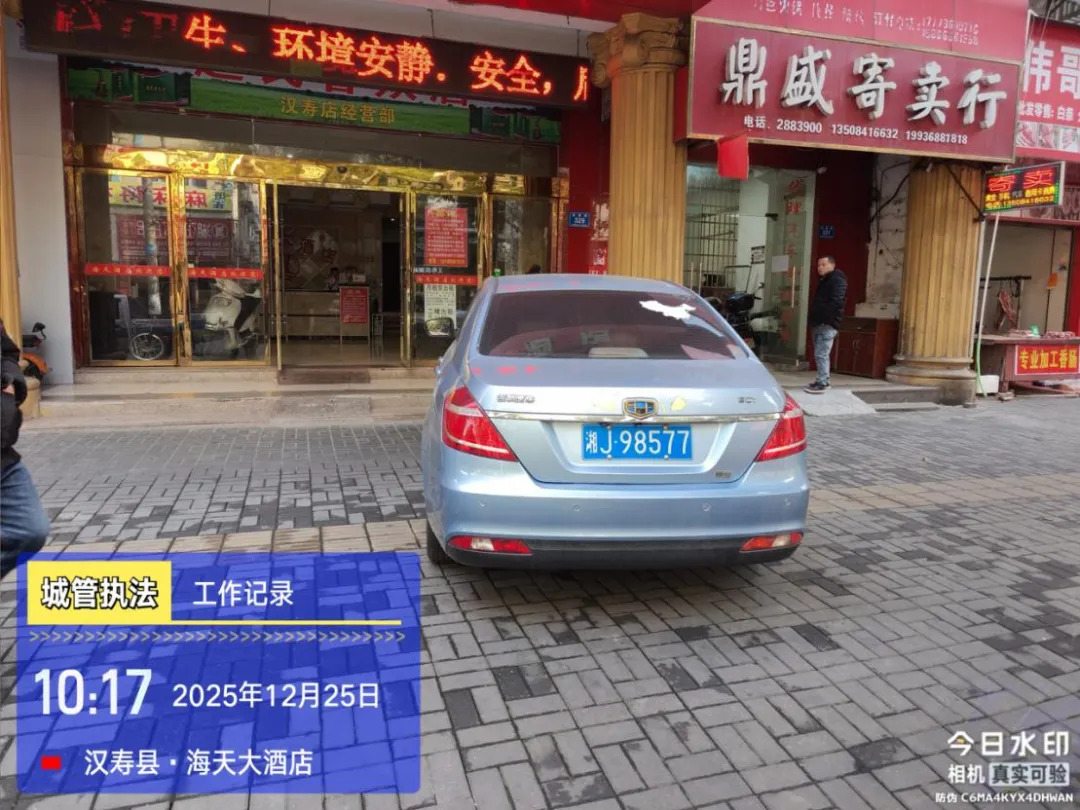 湘J98577于2025年12月25日在海天大酒店不按规定停车