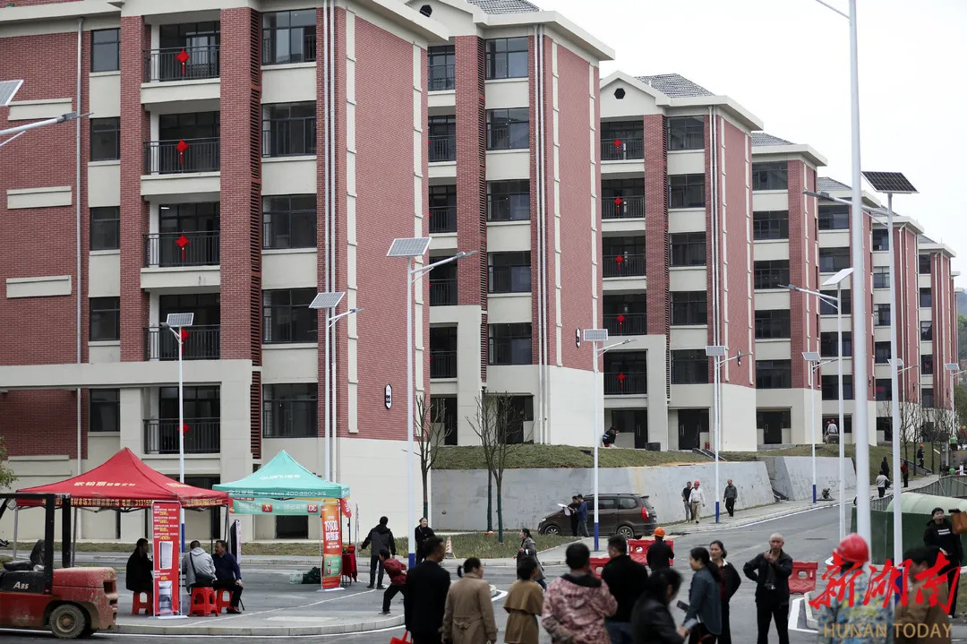 4月7日,资兴市兴宁镇集中安置点二期,安置户在领取新房钥匙后看房。 李科 摄(湖南图片库)