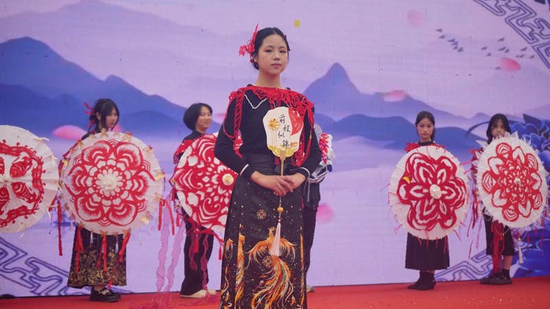 演出由气势恢宏的群舞《象王行》拉开序幕。整场汇演节目形式多样、内涵丰富,有《入画江南》《声声慢》等古风雅韵的演绎,有《小螺号》《福气要来到》等童趣盎然的呈现,也有《花样篮球》《Super Star》等充满青春活力的现代展示。教师节目《我爱上班》创意朗诵深情洋溢,群舞《zoo》《我的祖国》动感十足。美术社团《非遗时装秀(纸韵·新生)》则将传统纸艺与现代设计巧妙融合,体现文化传承与创新精神......