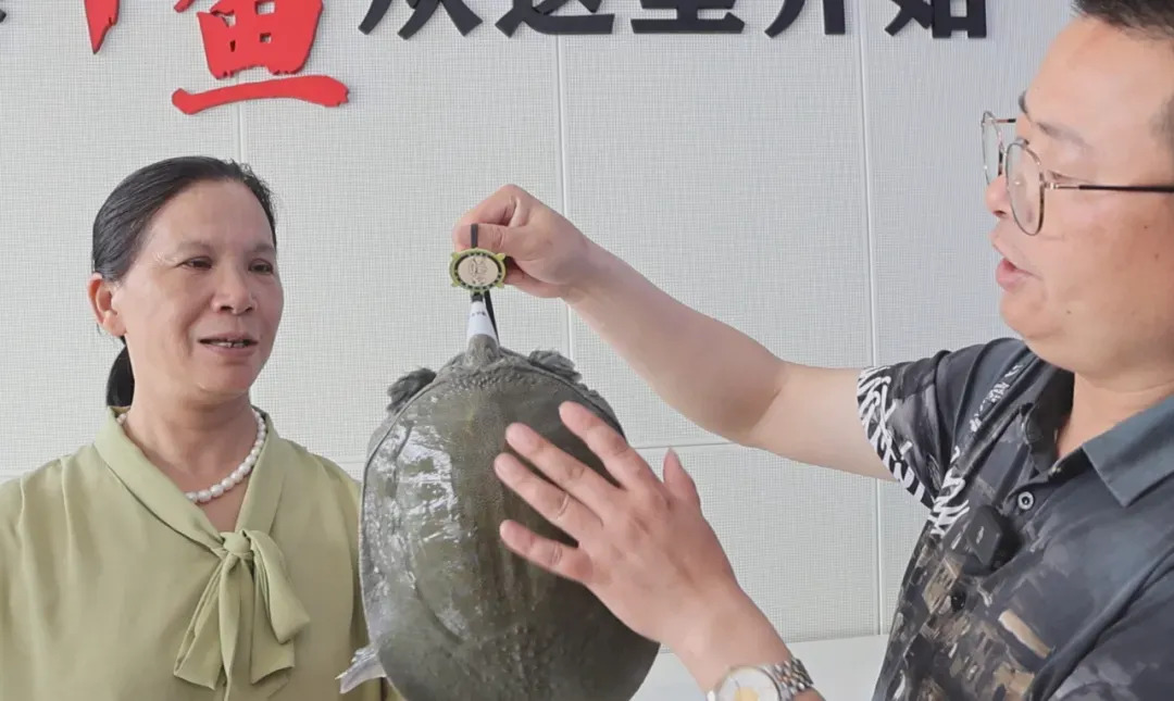 佩戴防伪溯源“身份证”的汉寿甲鱼