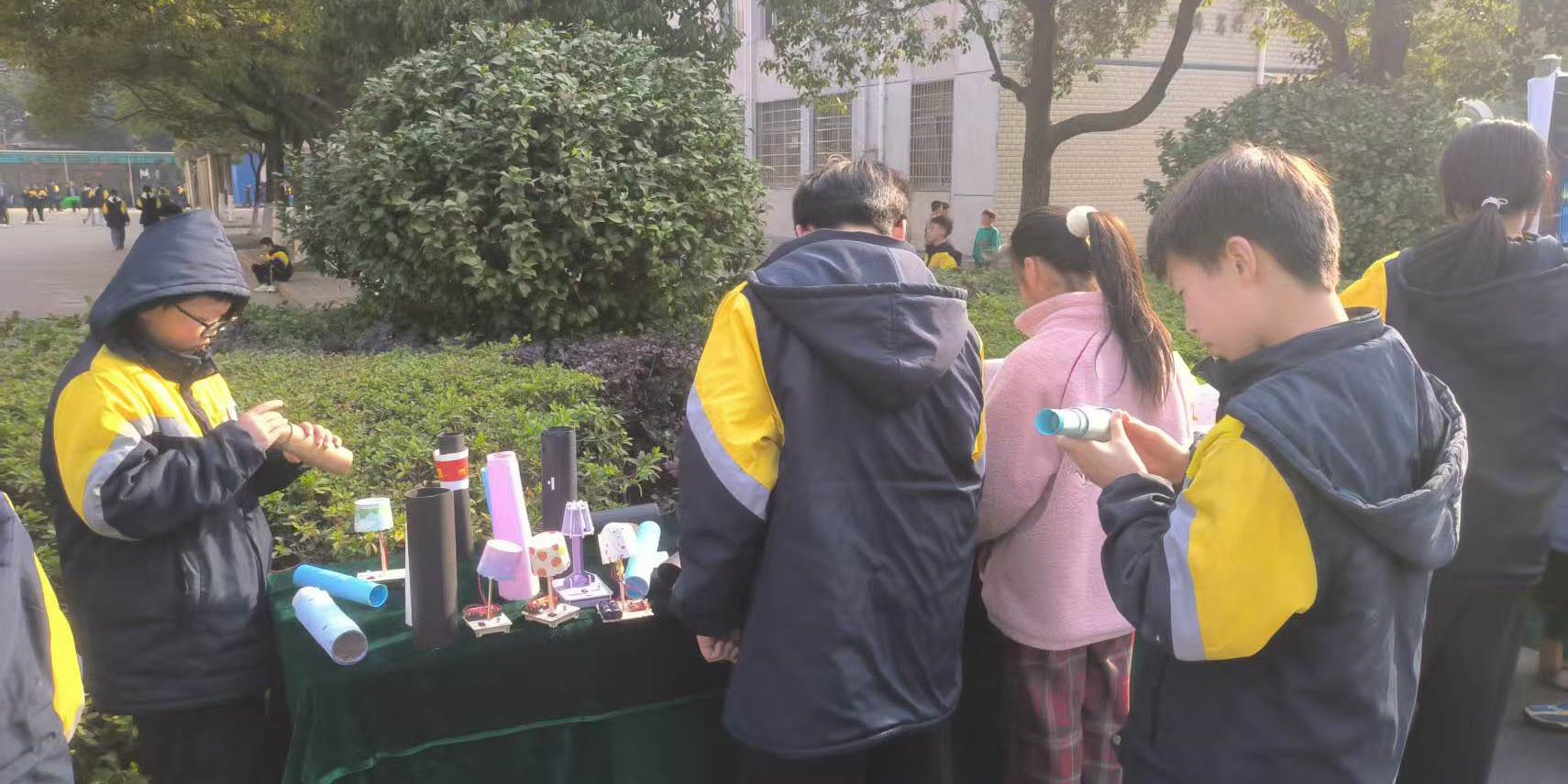 “调整好透镜距离,远处的景物就能看得很清晰。”学生讲解员一边演示,一边向其他同学讲解光学原理。从透镜选配到镜筒制作,整个过程让同学们对凸透镜成像原理有了更深的理解。