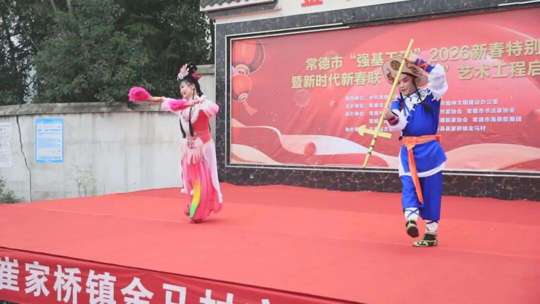 汉寿融媒1月19日讯(记者:童忠平)1月18日上午,常德市“强基工程”2026新春特别行动暨新时代新春联“百千万”艺术工程在汉寿县崔家桥镇金马村启动。