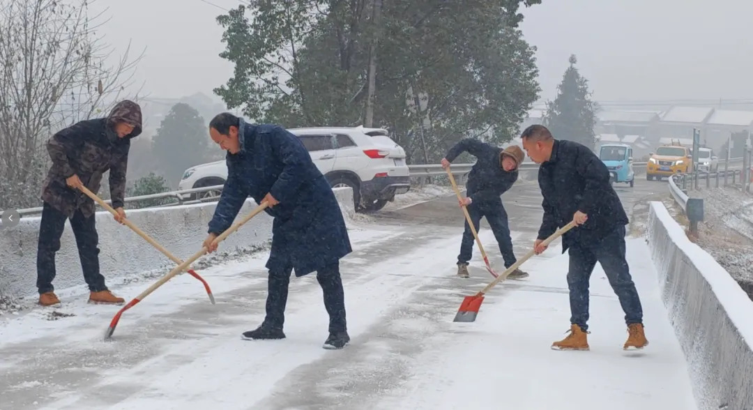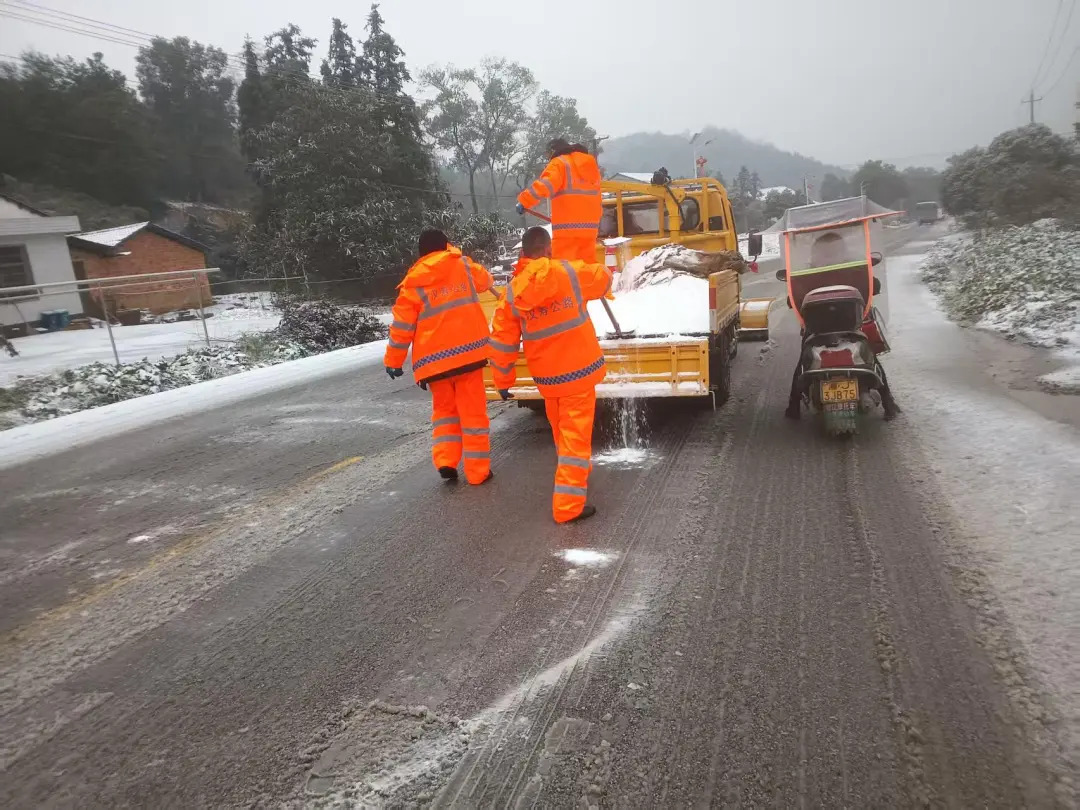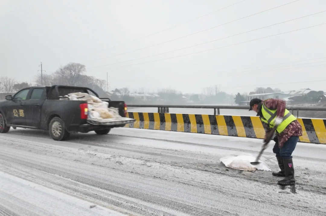 1月20日,百禄桥镇组织党员干部开展除冰保畅专项行动。大家驱车沿线撒盐融雪,在弯道、坡道等危险地段铲雪除冰,保障群众出行安全。