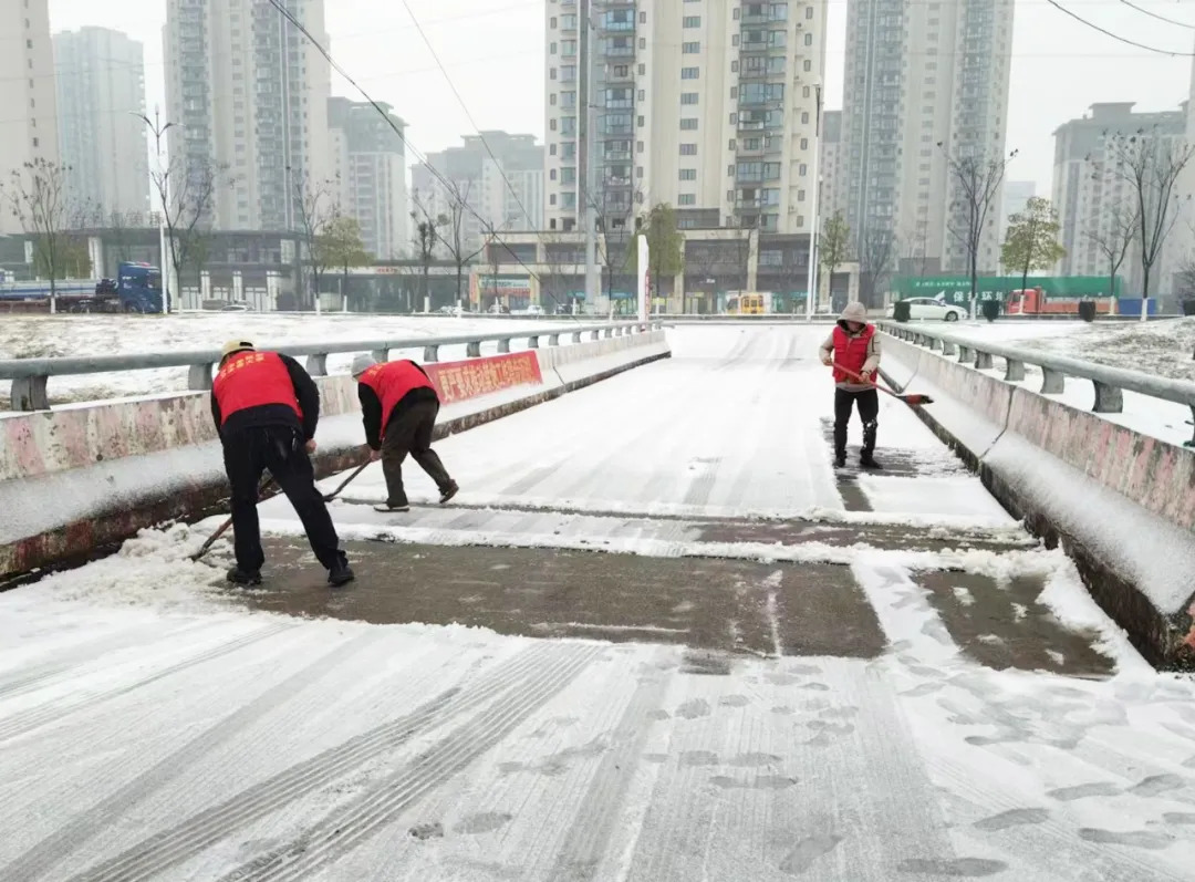 1月20日,朱家铺镇党委、政府以雪为令,奔赴沧水桥等重点路段开展铲冰除雪专项行动。干部职工们分工协作、默契配合,手持铁锹铲除桥面积雪,并沿着桥面两侧有序撒放融雪盐,加速冰层融化,同时抑制新冰形成,切实保障群众出行安全。