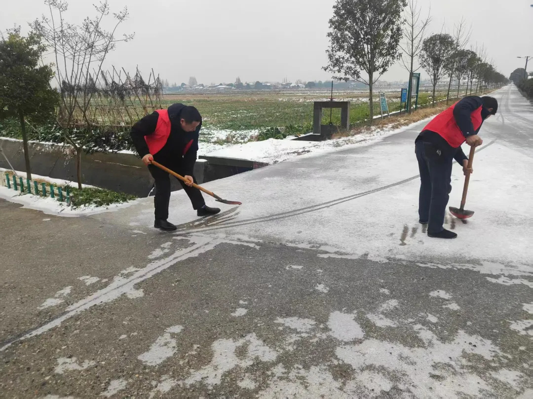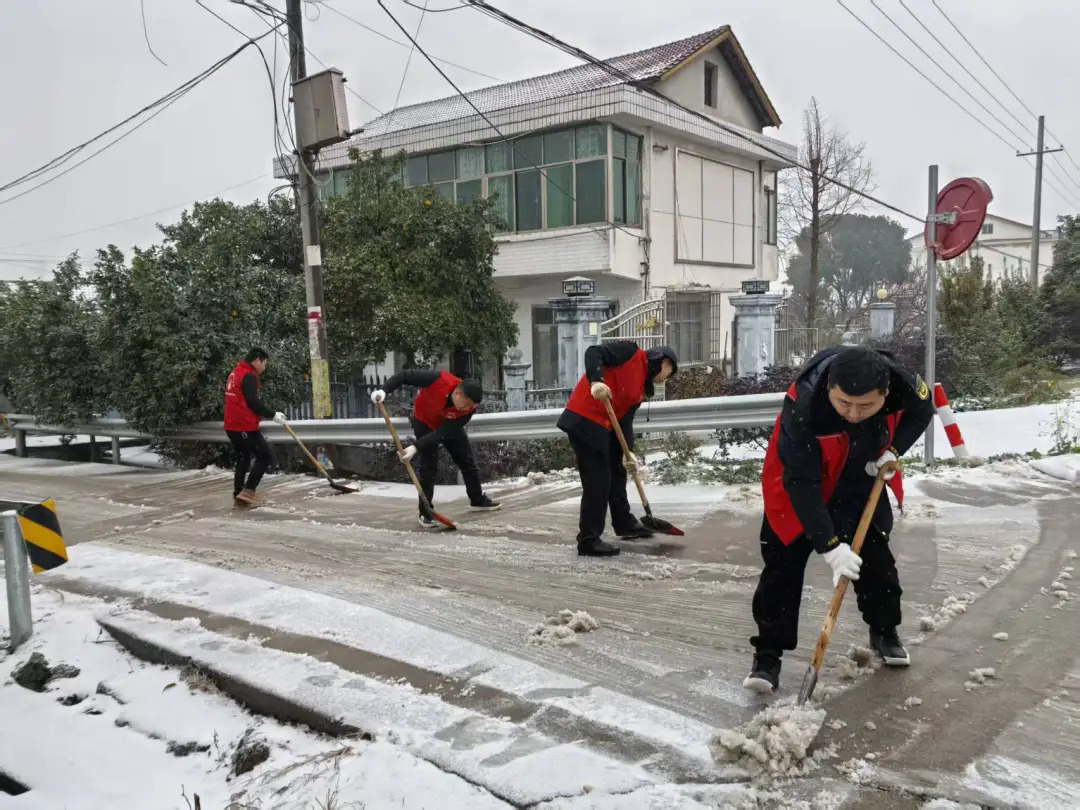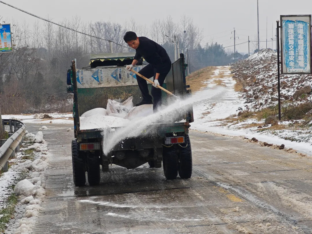 1月20日,为应对低温雨雪天气影响,蒋家嘴镇组织党员干部在主要交通干道及人口密集区域开展撒盐铲雪行动,全力保障道路畅通与群众出行安全。