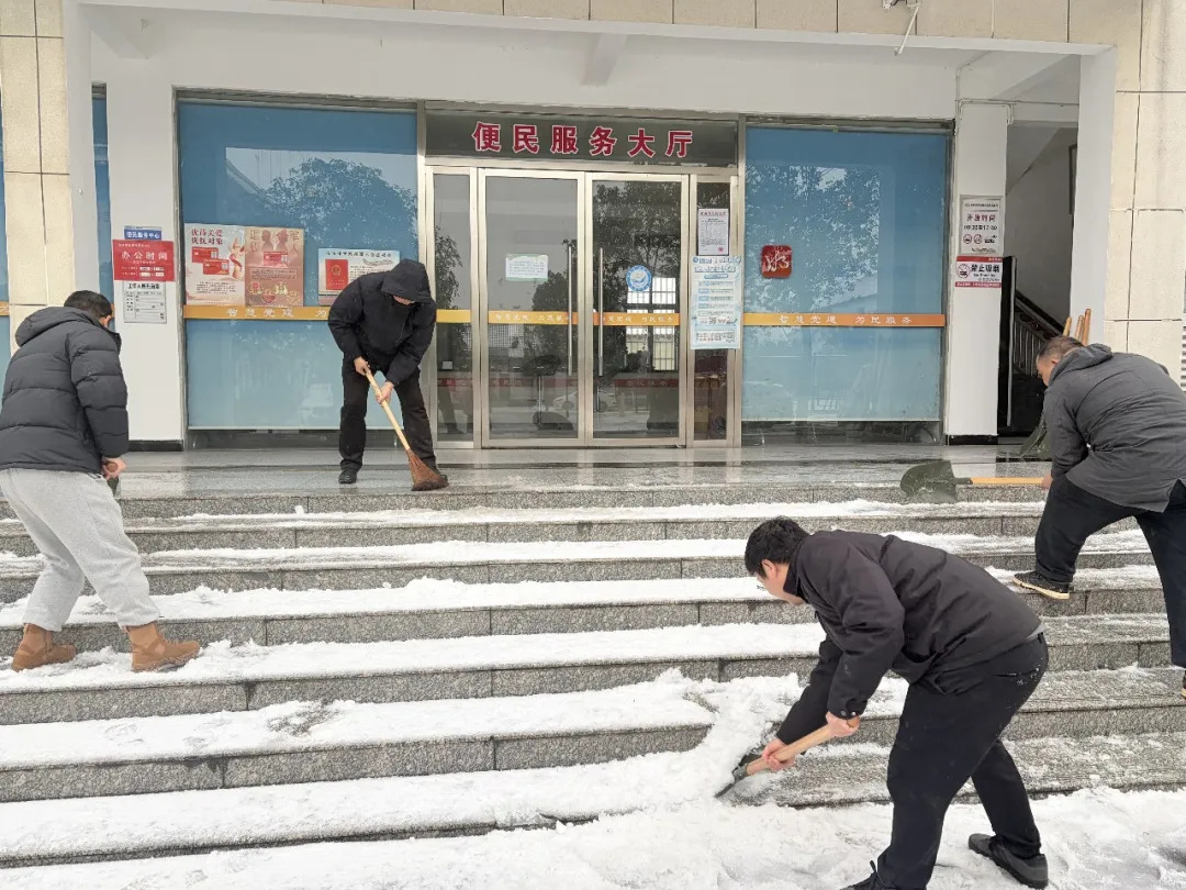 1月20日,聂家桥乡组织工作人员对便民服务中心门前及周边路段开展积雪清扫作业,对辖区内冰冻路段进行撒盐铲雪,全力保障群众办事通道畅通,以“风雪虽寒、服务不减”的担当,确保政务服务业务正常办理。