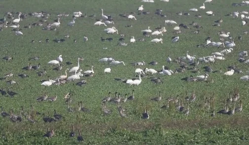 湖南西洞庭湖国家级自然保护区管理局工程师 刘鹏:经过我们的监测人员的一些日常的一些工作(监测),碟形湖里面已经聚集了很多越冬候鸟,鸟的种类也比较多,我们现在比较突出的碟形湖,比如正喜障,目前上个月监测到大概是有1500左右的水鸟,主要就是国家的二级保护动物白琵鹭和小天鹅,它们大概有1200多只,此外还有一些苍鹭,一些野鸭。