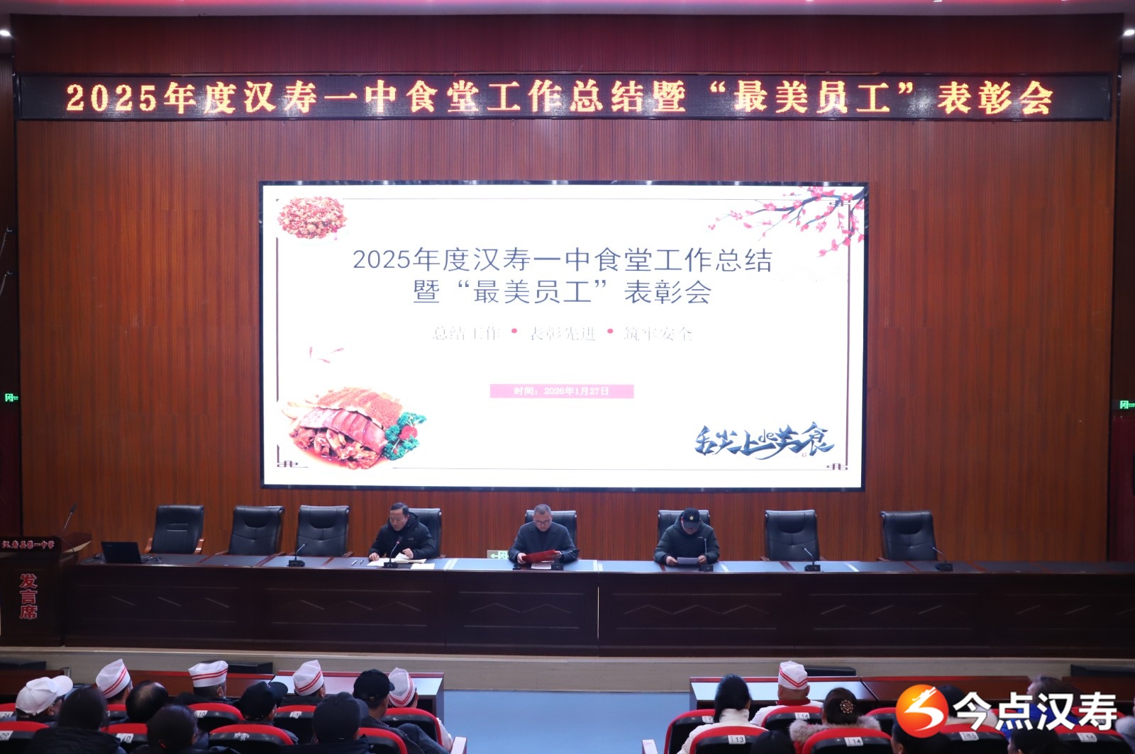 汉寿融媒1月28日讯(通讯员:陈雨欣)1月27日晚,汉寿一中召开食堂年度工作总结暨表彰会议。学校班子成员、膳食处负责人及全体食堂员工参加了会议。