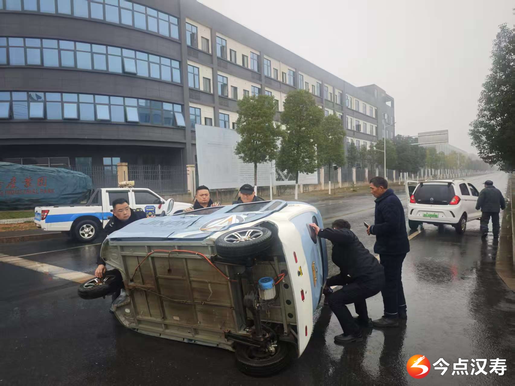 城管队员们分工协作,一边做好现场安全警示,疏导路面来往车辆,一边合力将侧翻的三轮电动车扶正,仔细查看车辆受损及人员受伤情况。