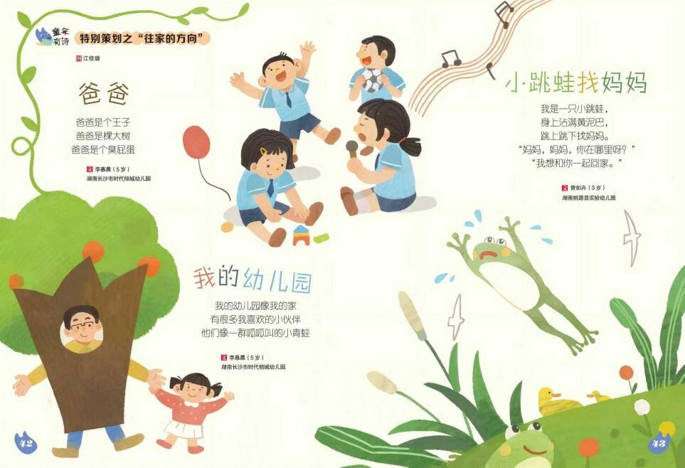曾如卉是一个三岁零十一个月的男孩子。有一个晚上,他妈妈没有和他睡。第二天,孩子爷爷说,他创作了一首想念妈妈的小诗:“我是一只小跳蛙,身上沾满黄泥巴,跳上跳下找妈妈。妈妈,妈妈,你在哪里呀?我要和你一起回家。”(这首小诗由帅帅自己朗颂)这一天,孩子三岁零八个月。这首诗歌,热气腾腾地发表在2026年第一期《幼儿画刊》上,曾如卉因此领到了人生第一笔稿费。