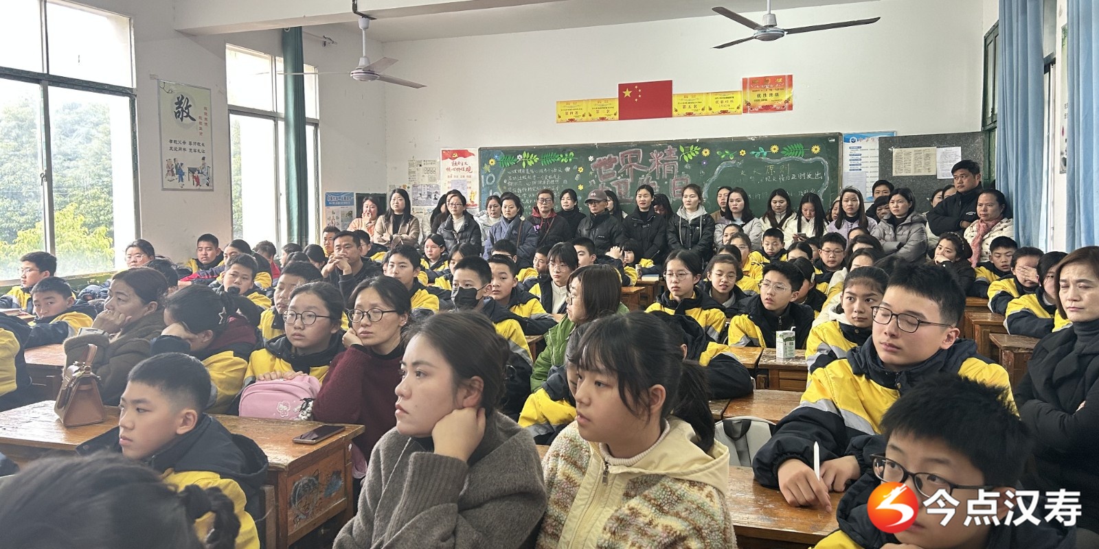 教室内,班主任与家长们亲切交流,温馨的氛围弥漫在每一个角落。