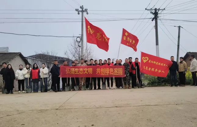 汉寿融媒3月11日讯(作者:刘朝) 春潮涌动,万物勃发。在第48个植树节来临之际,310日,汉寿县辰阳街道武装部组织基干民兵,联合街道退役军人志愿者服务分队开展义务植树活动。