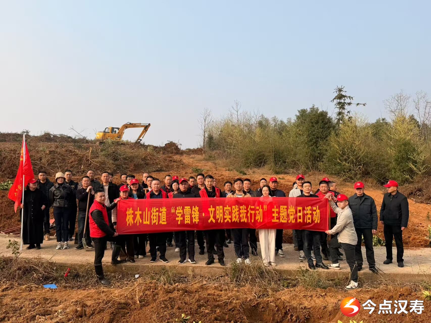 汉寿融媒3月12日讯(通讯员:李文翔)3月12日,汉寿县株木山街道机关党支部联合新时代文明实践所、退役军人服务站,组织全体机关干部、志愿者前往清水湖社区的杉树山,开展“学雷锋·文明实践我行动”主题党日活动,以植树添绿的实际行动,为乡村振兴注入绿色动能。