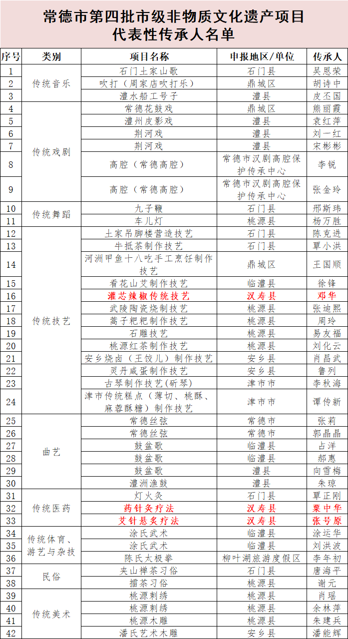 3月23日,常德市文化旅游广电体育局公布第四批市级非物质文化遗产项目代表性传承人名单,其中,汉寿县3名市级非遗代表性传承人入选!