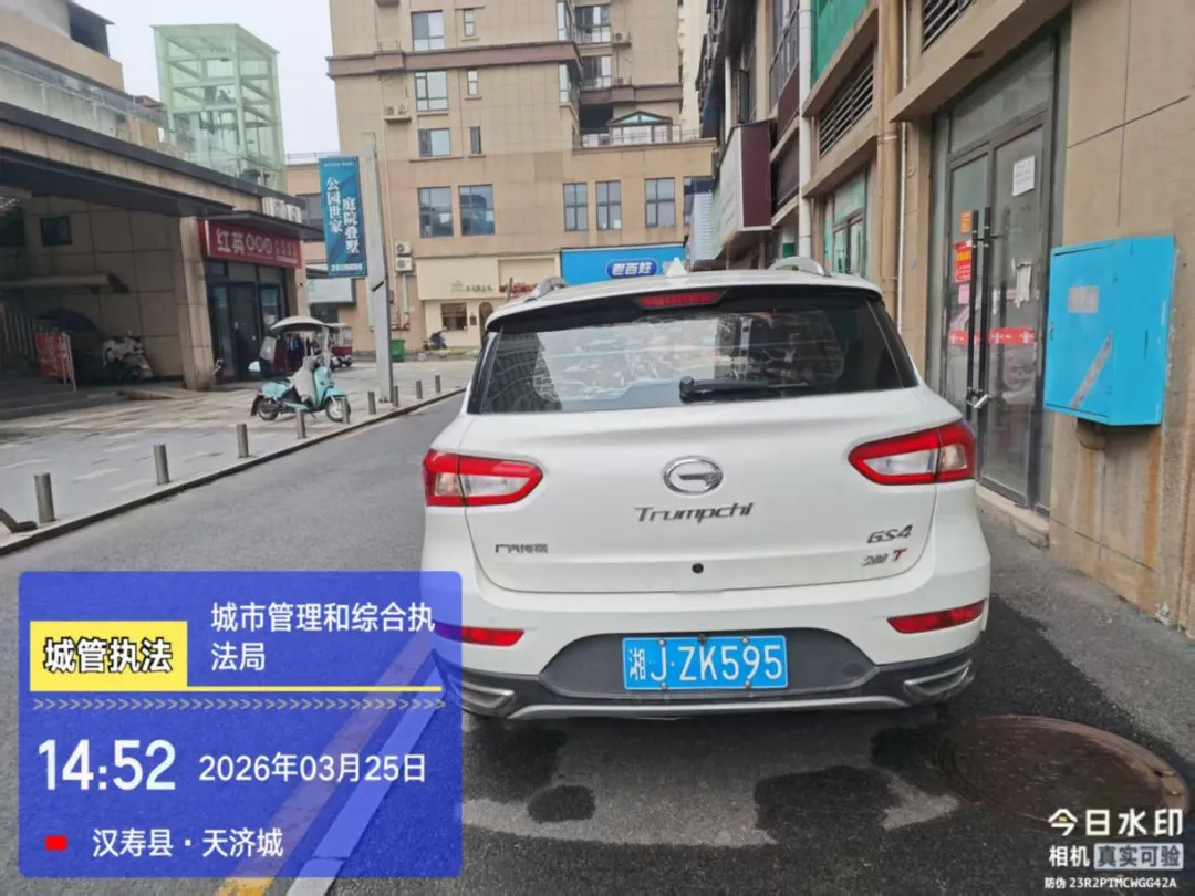 湘JZK595于2026年3月25日在天济城不按规定停车。