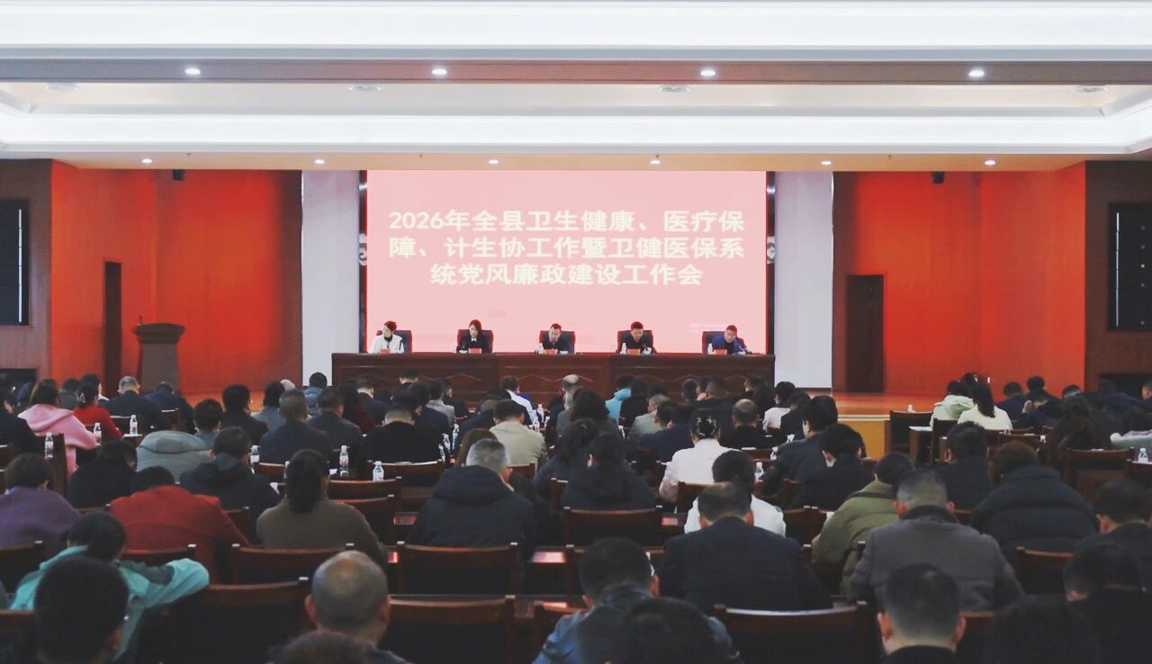 会议总结了2025年全县卫生健康、医疗保障、计生协工作取得的成绩,分析了当前存在的短板与不足,对2026年重点任务及卫健医保系统党风廉政建设工作提出具体要求。