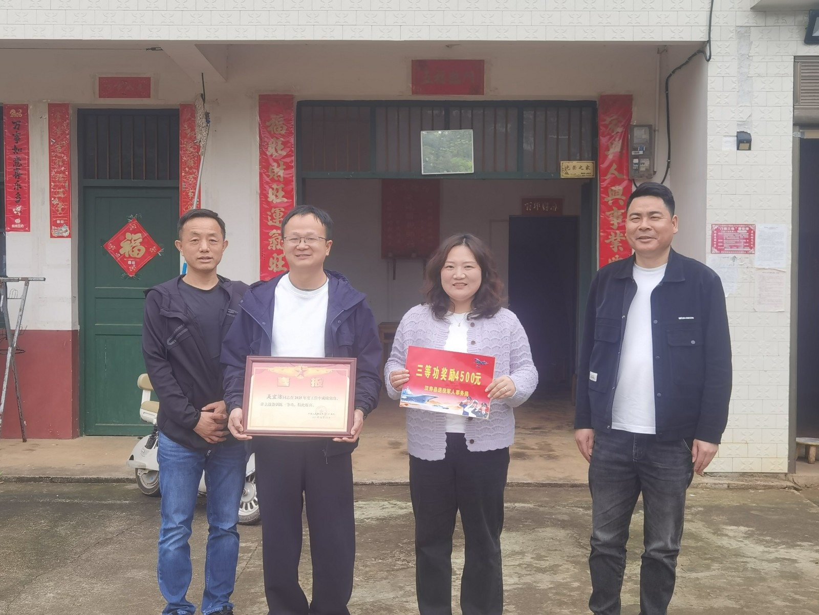 汉寿融媒4月8日讯(通讯员:袁彬力)4月8日,汉寿县退役军人事务局联合蒋家嘴镇开展立功喜报送达活动,把军营荣光与党和政府的关怀送到立功军人家中,让“一人立功、全家光荣”成为最美新风尚。